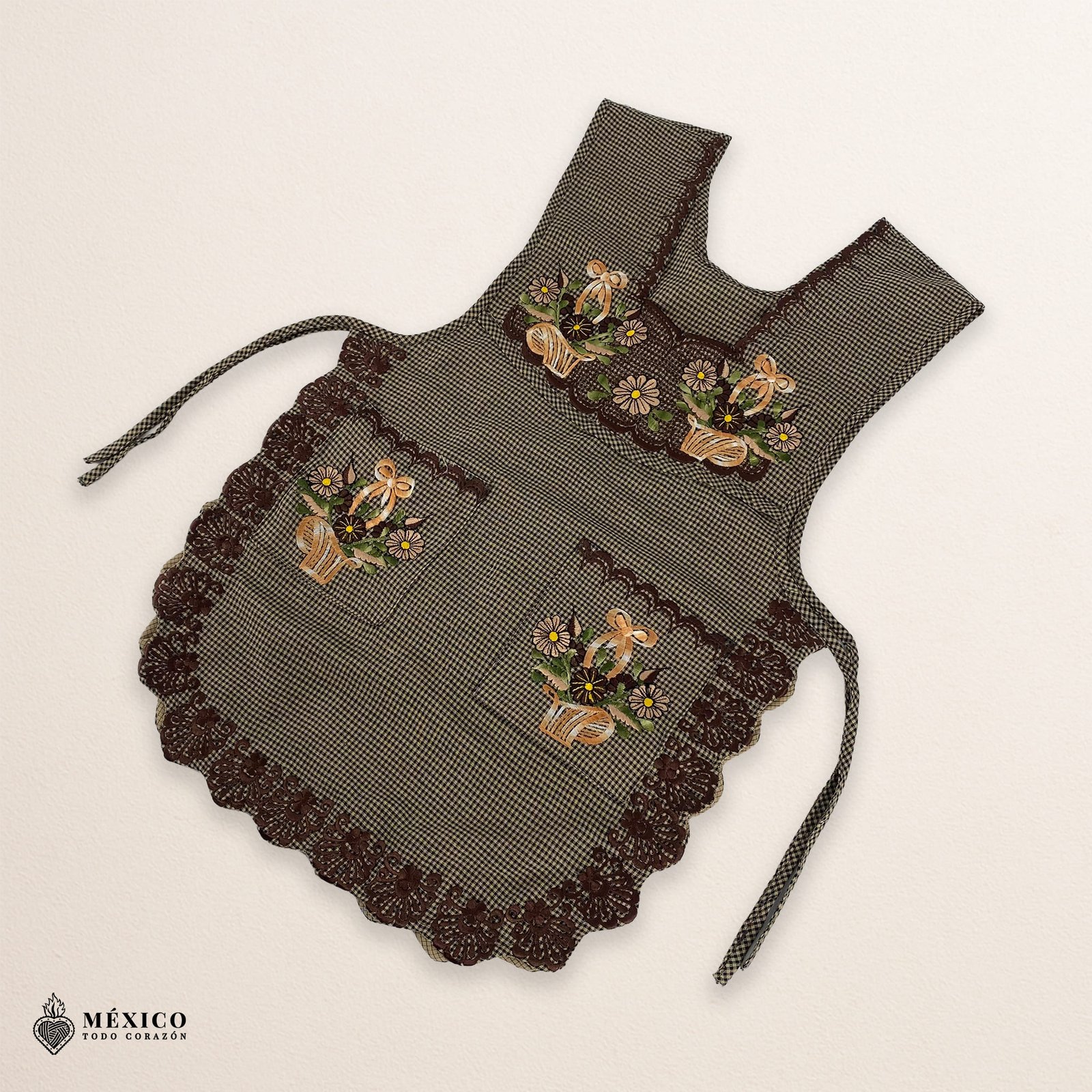 Add a touch of tradition to your daily routine with our Traditional Mexican Embroidered Smock Apron for Women. Each piece is handmade by skilled artisans, featuring floral embroidered details that celebrate Mexican craftsmanship.