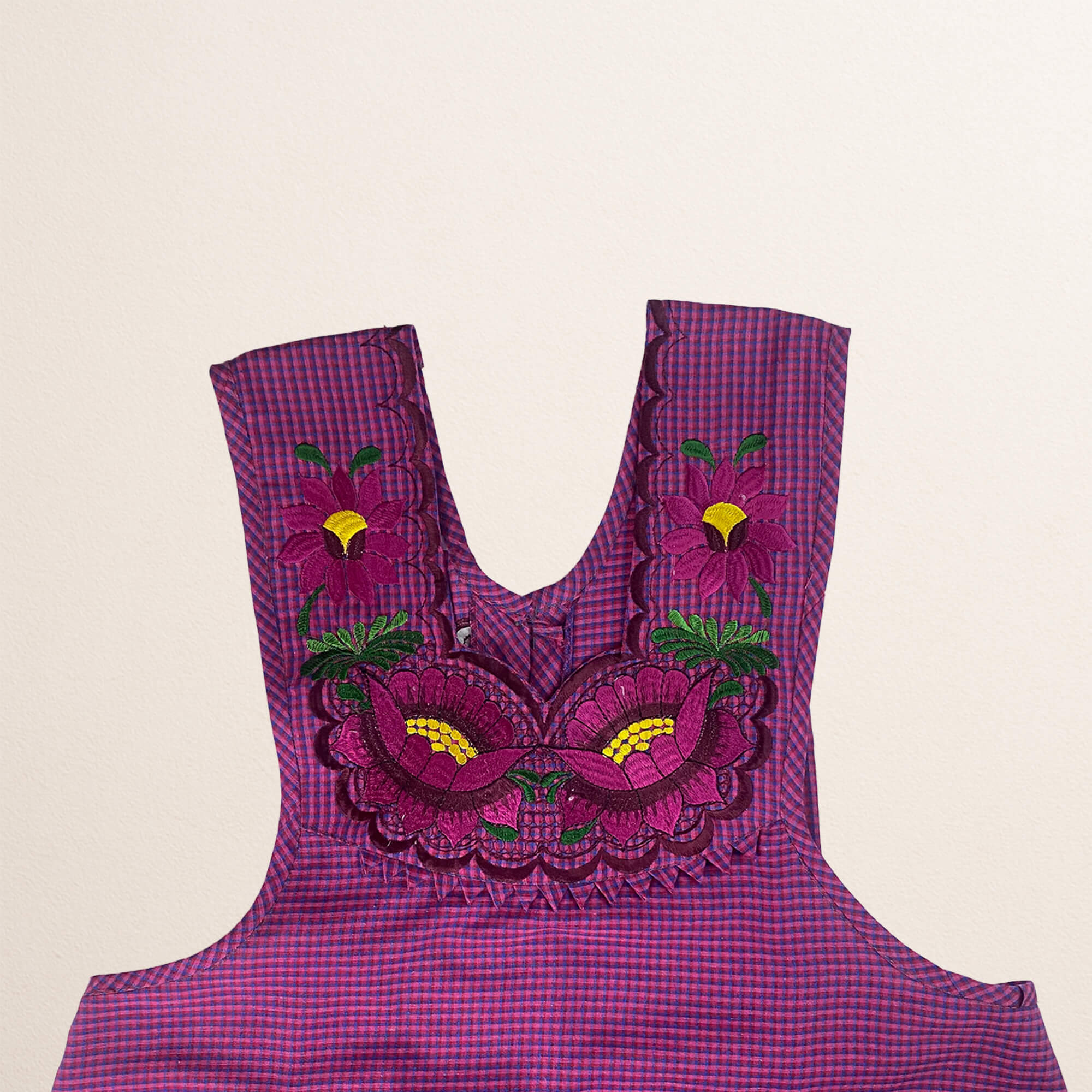 Burgundy Mexican Embroidered Apron – Floral Cotton Kitchen Cooking Gift