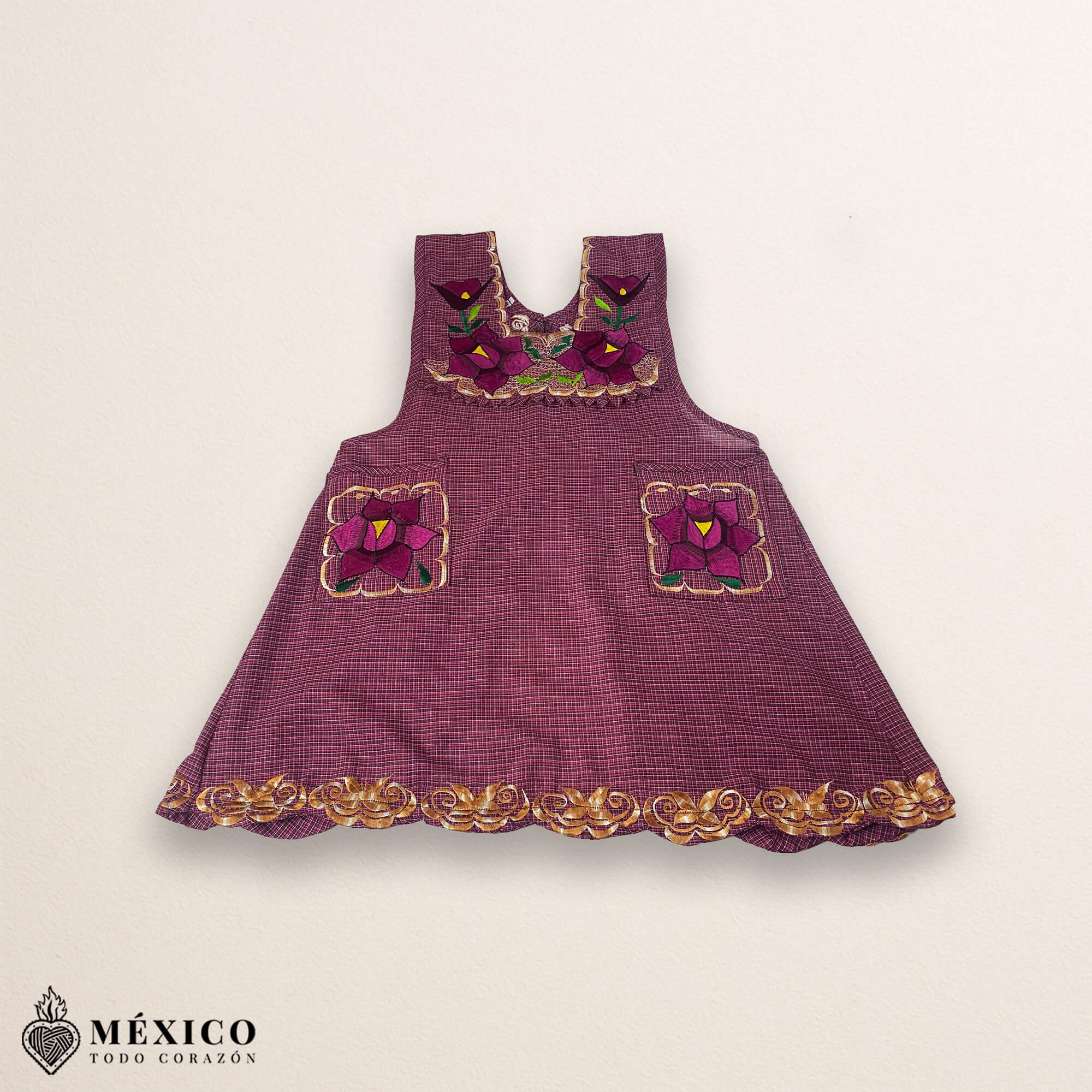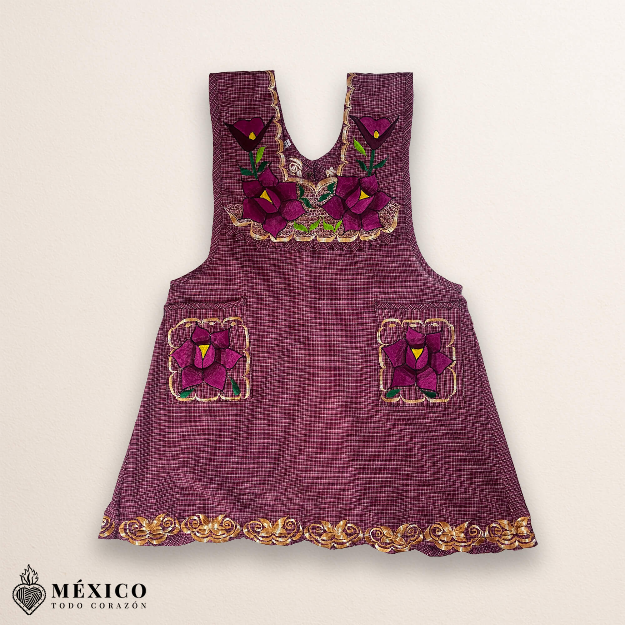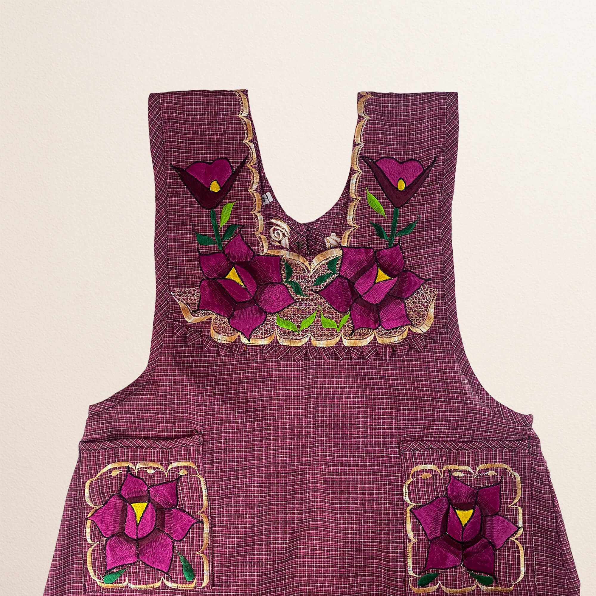 Burgundy Mexican Embroidered Apron – Floral Cotton Kitchen Cooking Gift