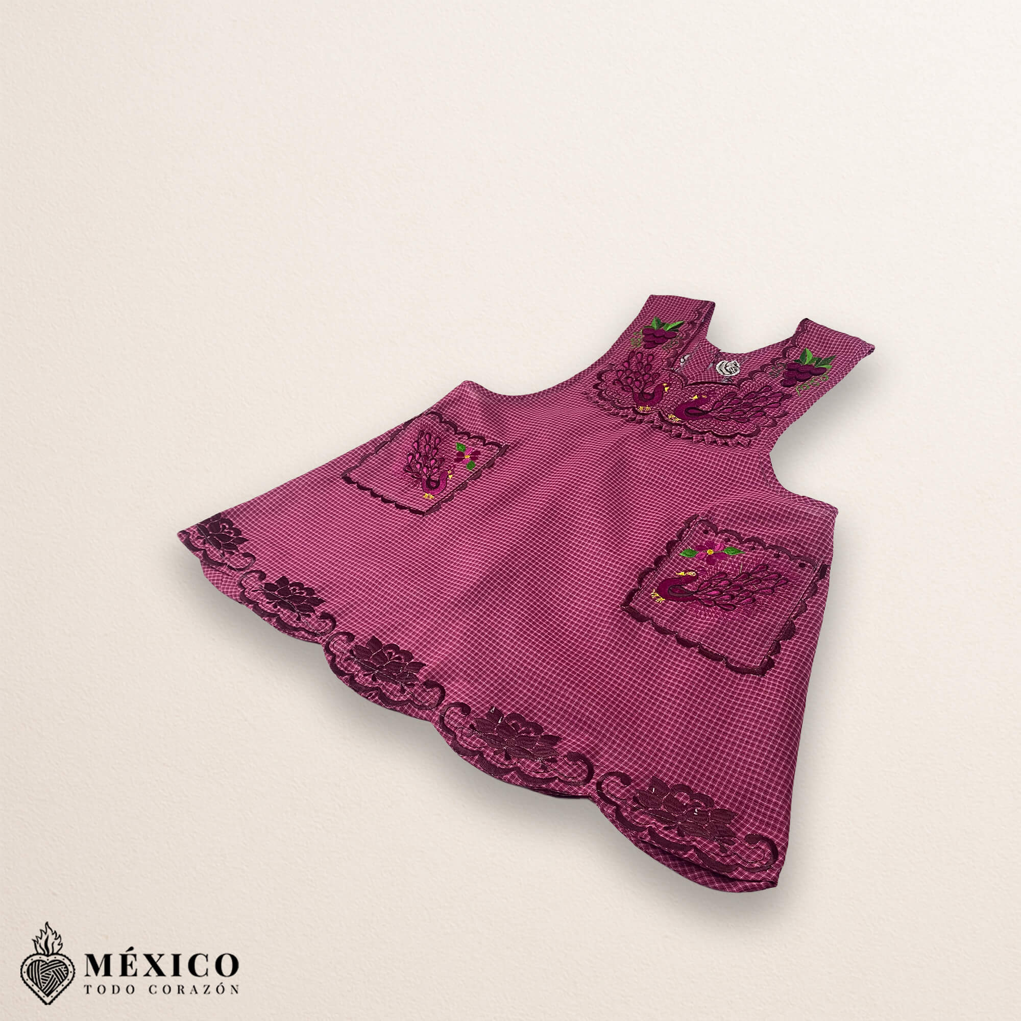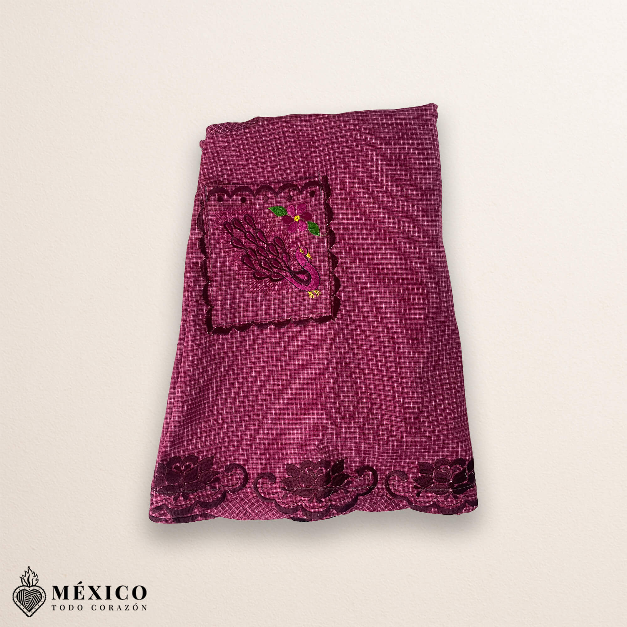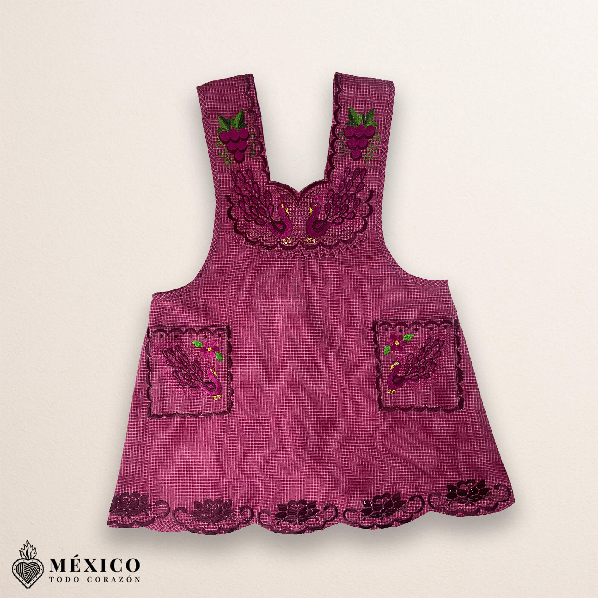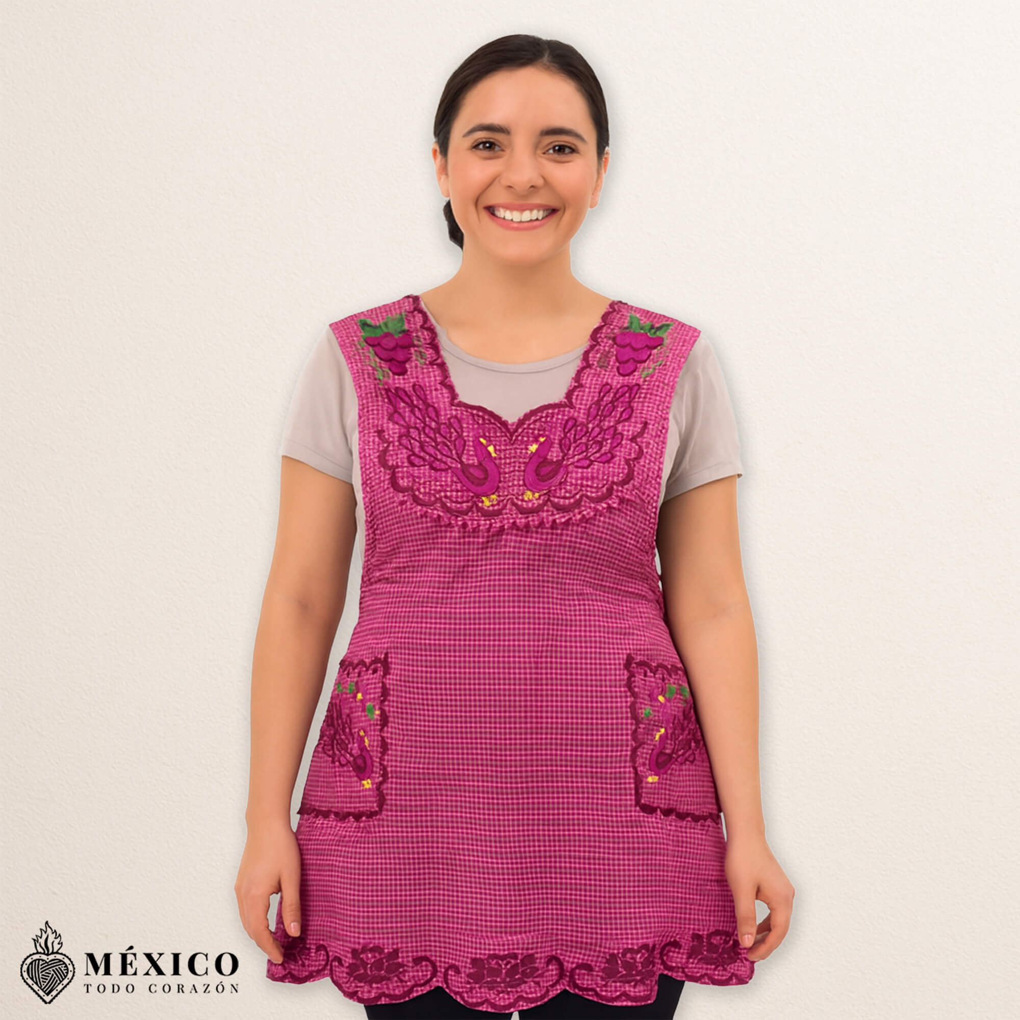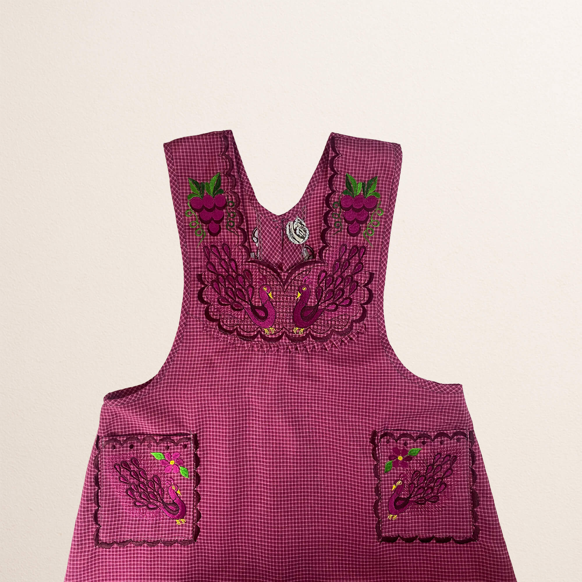 Burgundy Mexican Embroidered Apron – Grape Fruit Peacock Cotton Kitchen Gift