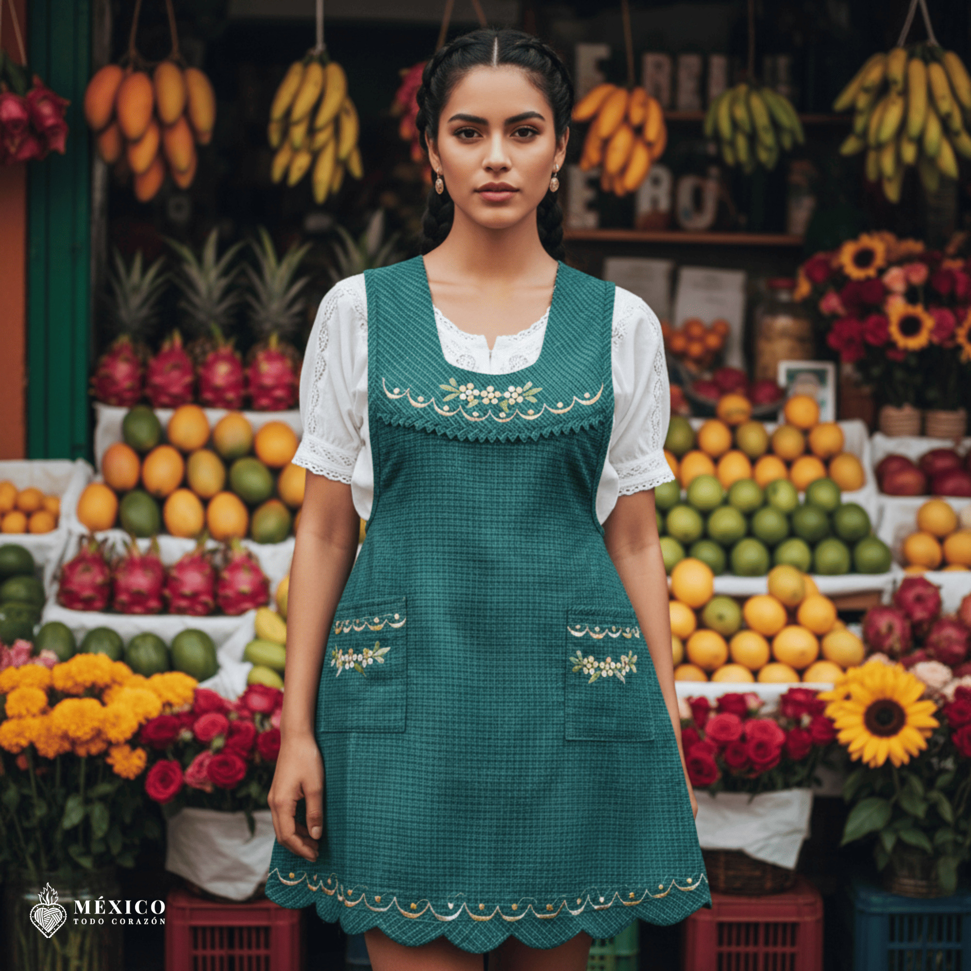Enjoy comfort and practicality with our Essential Traditional Mexican Embroidered Apron, crafted with a blend of 40% cotton and 60% polyester. This category offers simpler embroidery details compared to higher lines, making it an affordable and lightweight option while still preserving authentic handmade charm.