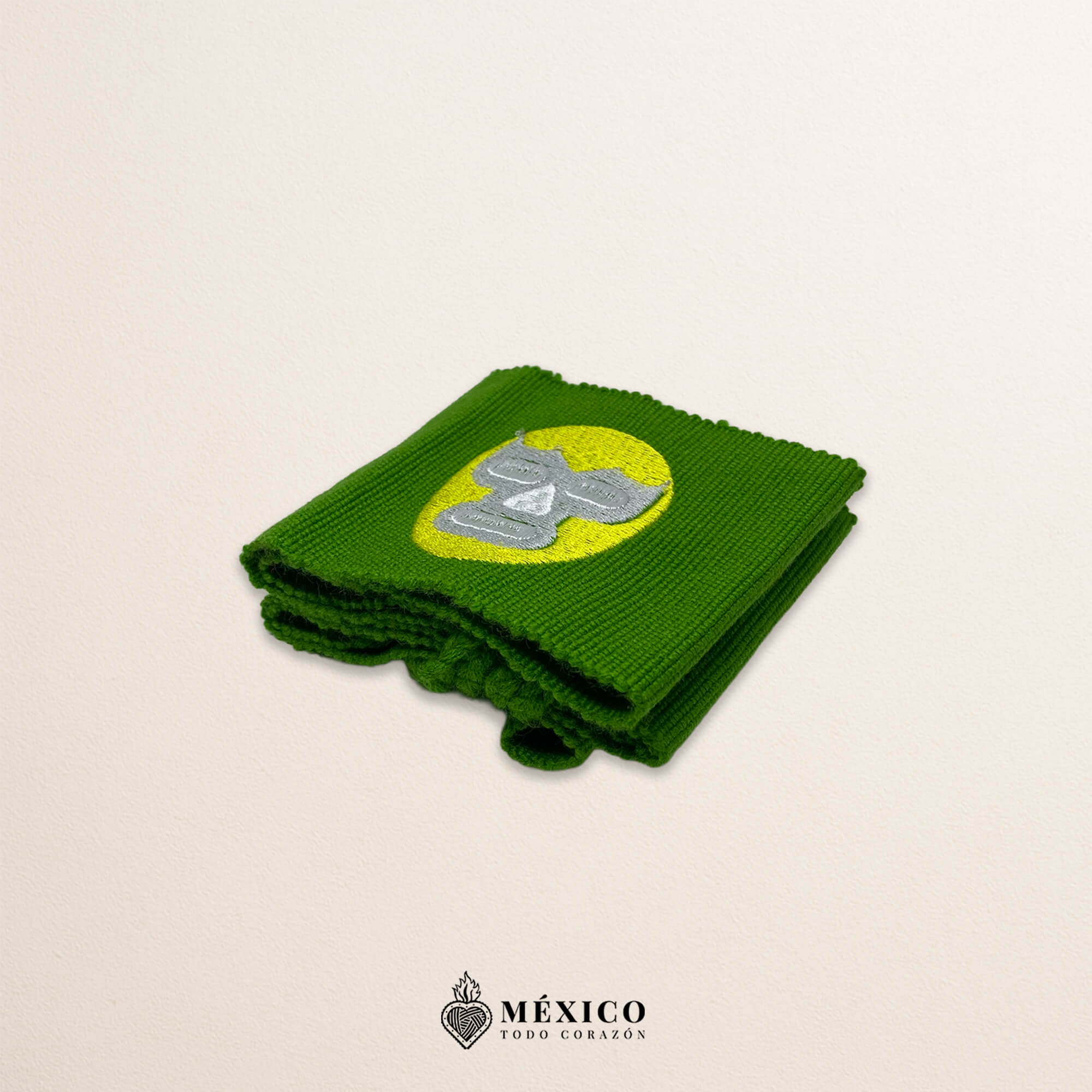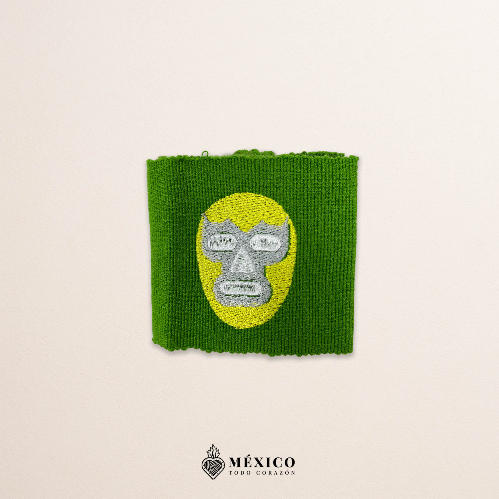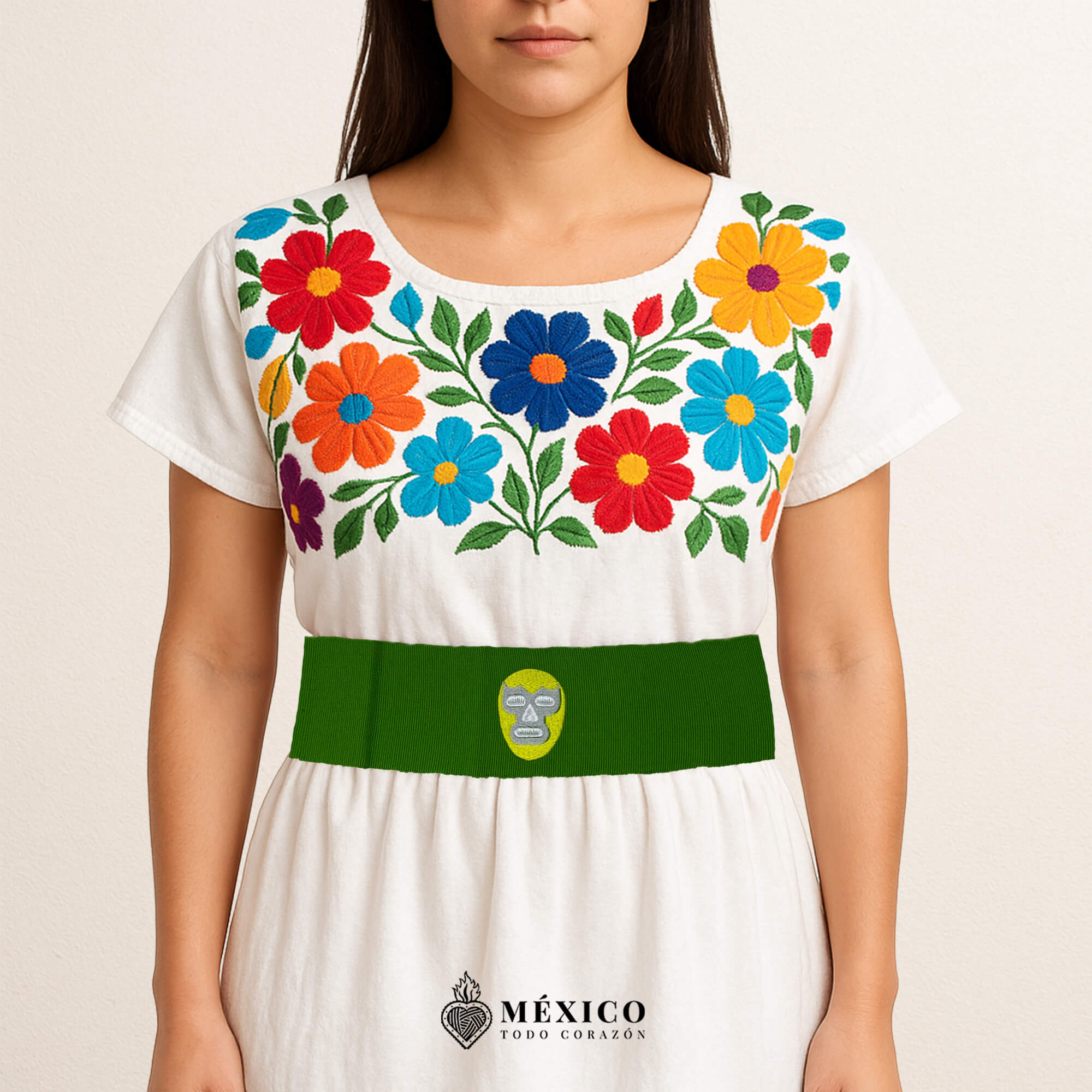 Handcrafted Luchador Mask Embroidered Mexican Waist Belt – Premium Green Faja