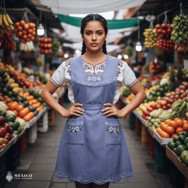 Enjoy comfort and practicality with our Essential Traditional Mexican Embroidered Apron, crafted with a blend of 40% cotton and 60% polyester. This category offers simpler embroidery details compared to higher lines, making it an affordable and lightweight option while still preserving authentic handmade charm.