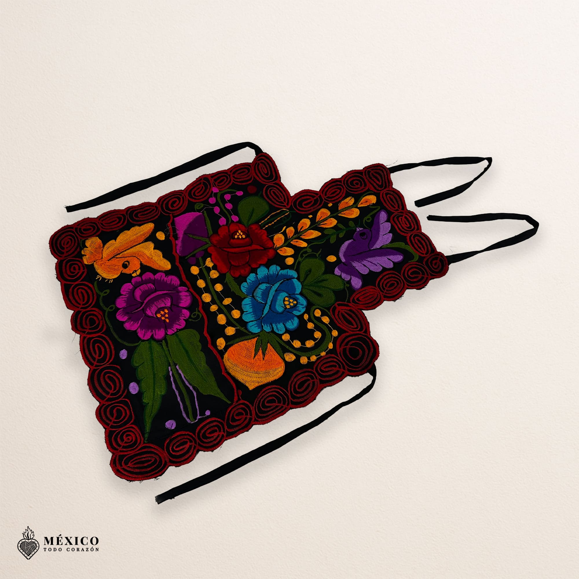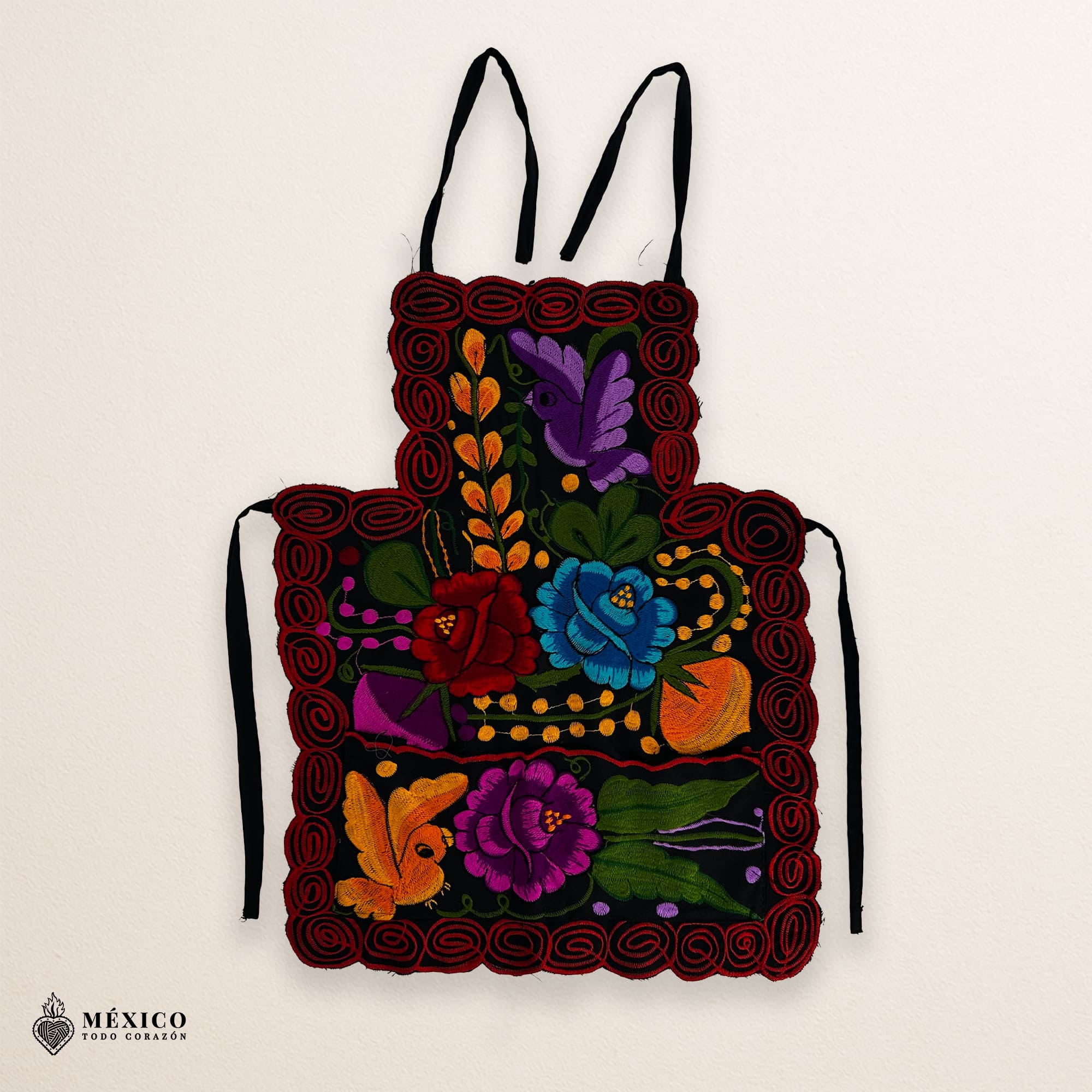 Elevate your style with our Traditional Mexican Embroidered Bib Apron. This category features enhanced embroidery quality, offering more detailed floral patterns and refined craftsmanship.