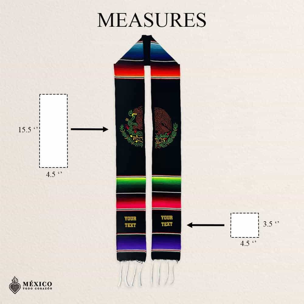 Celebrate your milestone with this embroidered Mexican Graduation Stole, made with traditional sarape fabric and detailed stitching that reflects the richness of Mexican heritage. Designed for versatility, the artwork can be worn on either side left or right, allowing each graduate to customize their look with cultural pride.