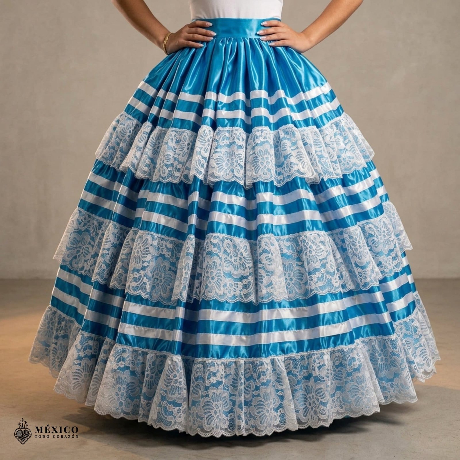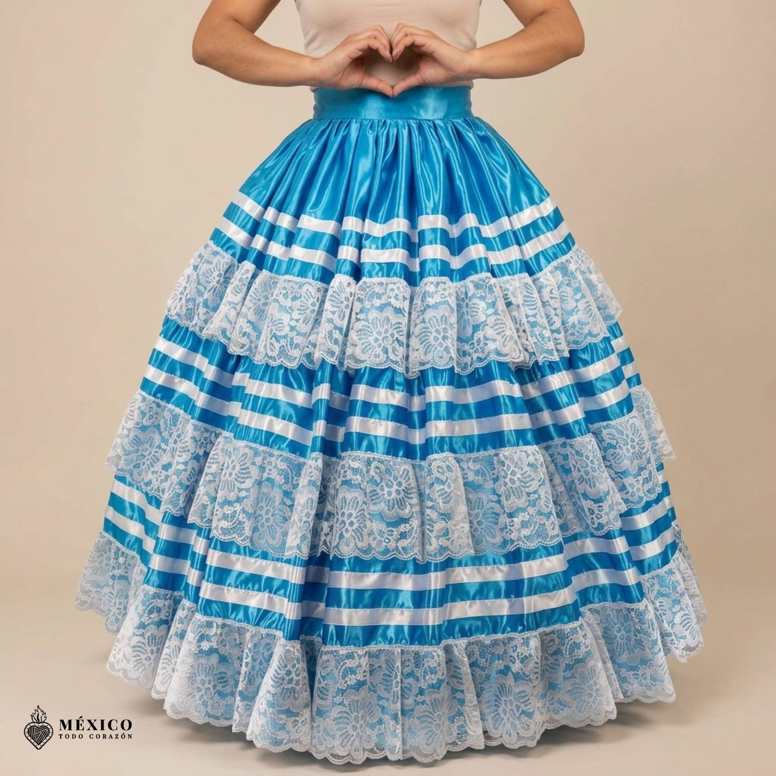 Celebrate tradition with elegance and movement. This Mexican folkloric double flare skirt is designed to create beautiful volume and flow with every step, making it ideal for dance performances, cultural events, and heritage celebrations.