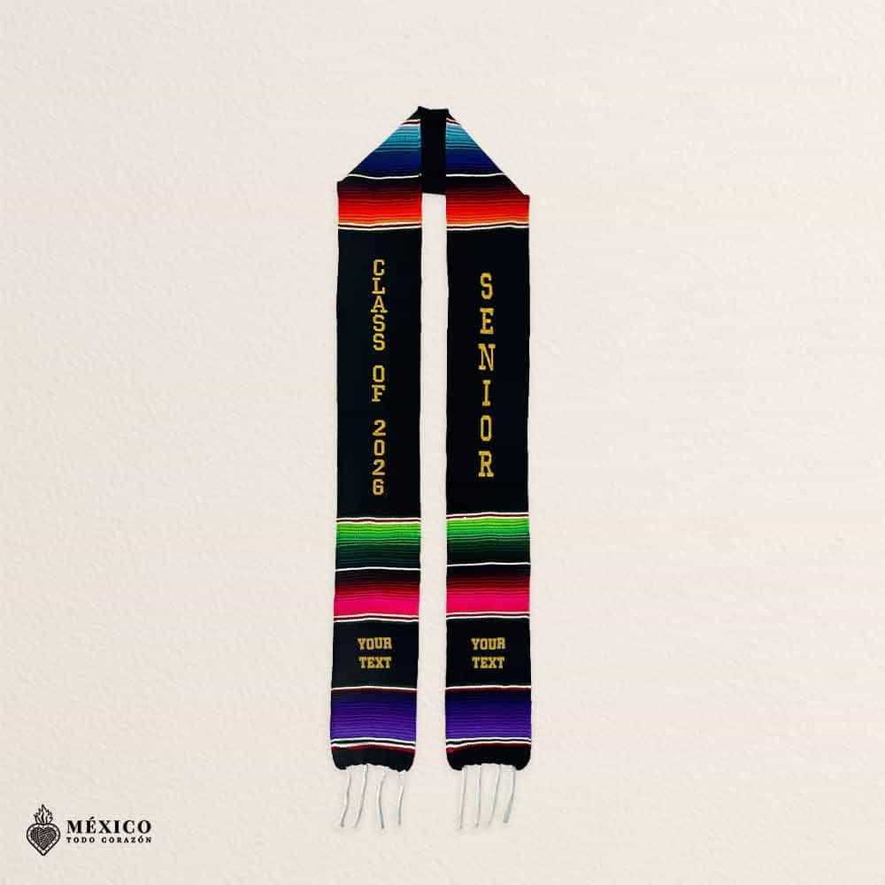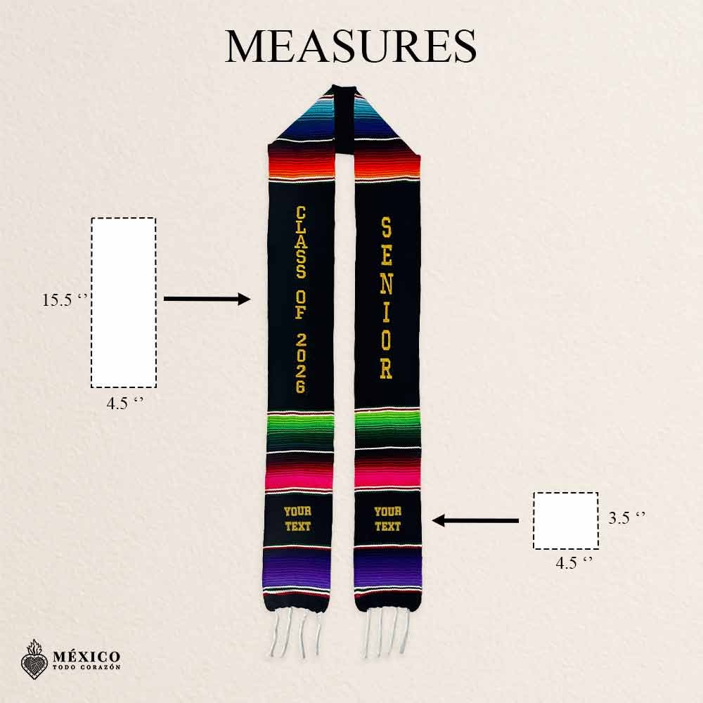 Mexican Graduation Stole Class Of 2026 And Senior Gold lettering
