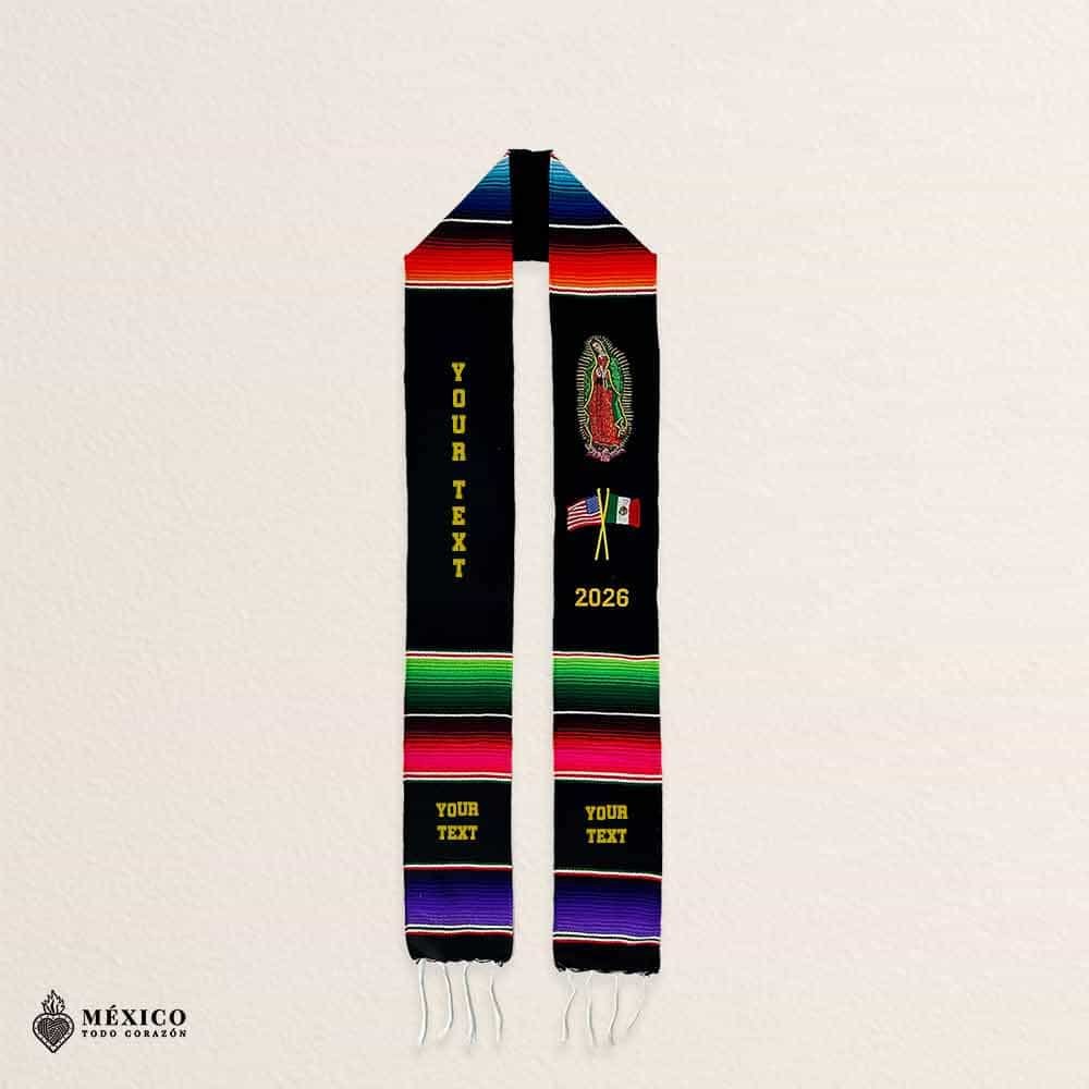 Personalized Mexican Sarape Graduation Stole – Virgen de Guadalupe With Flags