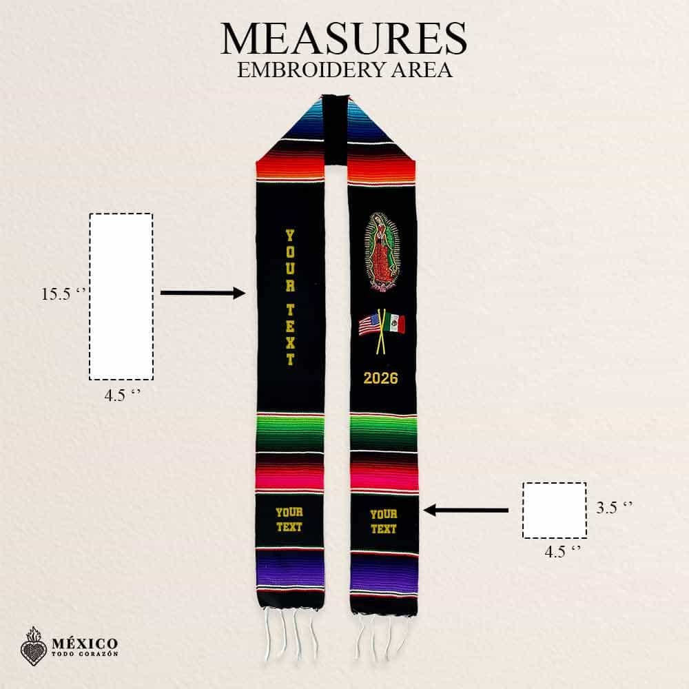 Celebrate your milestone with this embroidered Mexican Graduation Stole, made with traditional sarape fabric and detailed stitching that reflects the richness of Mexican heritage.