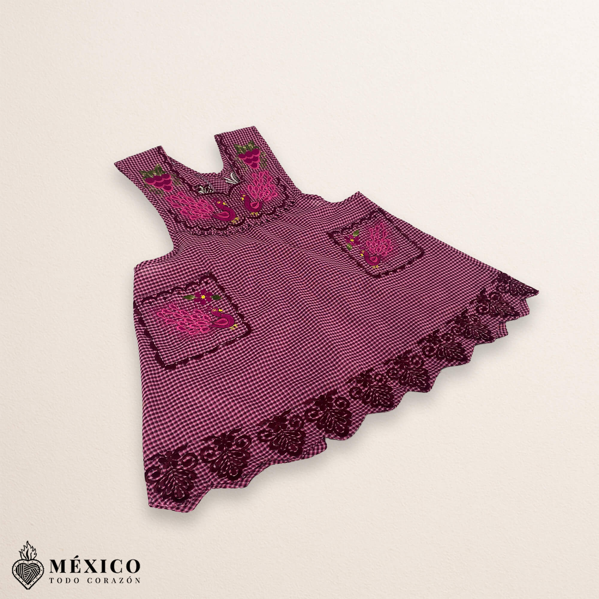 Pink Mexican Embroidered Apron – Standard Kitchen Apron Floral Embroidery