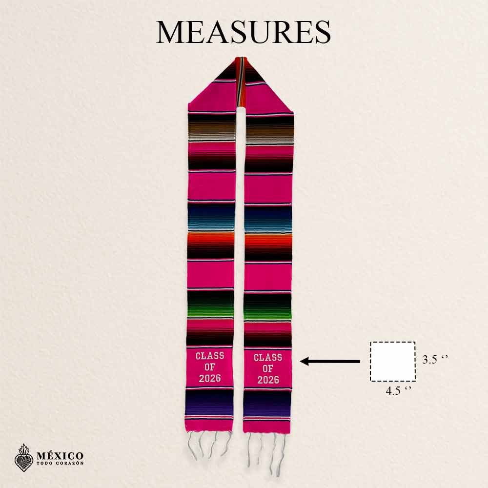 Celebrate your milestone with this handcrafted Mexican Graduation Stole, made with traditional sarape fabric and detailed stitching that reflects the richness of Mexican heritage. Designed for versatility, the artwork can be worn on either side left or right, allowing each graduate to customize their look with cultural pride.