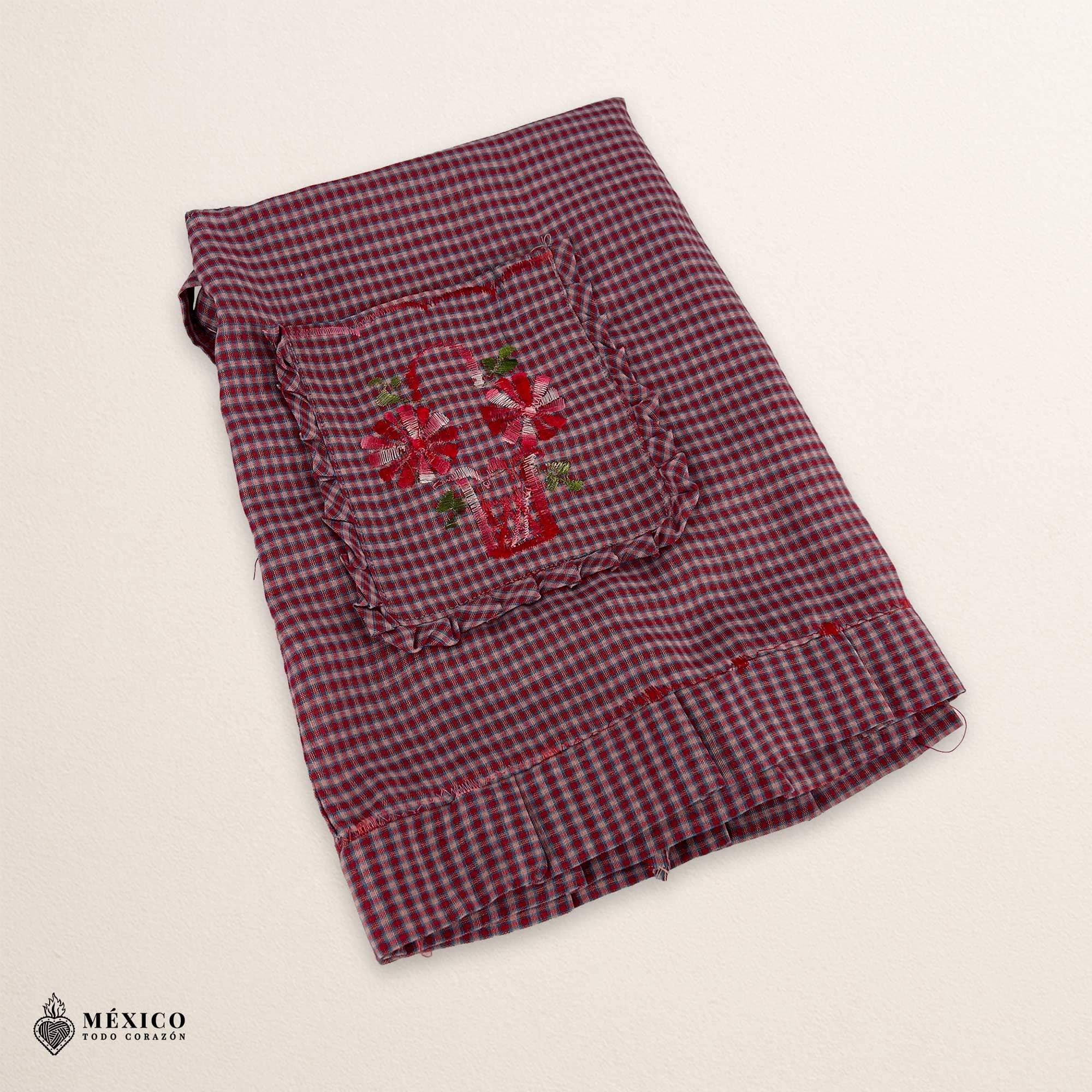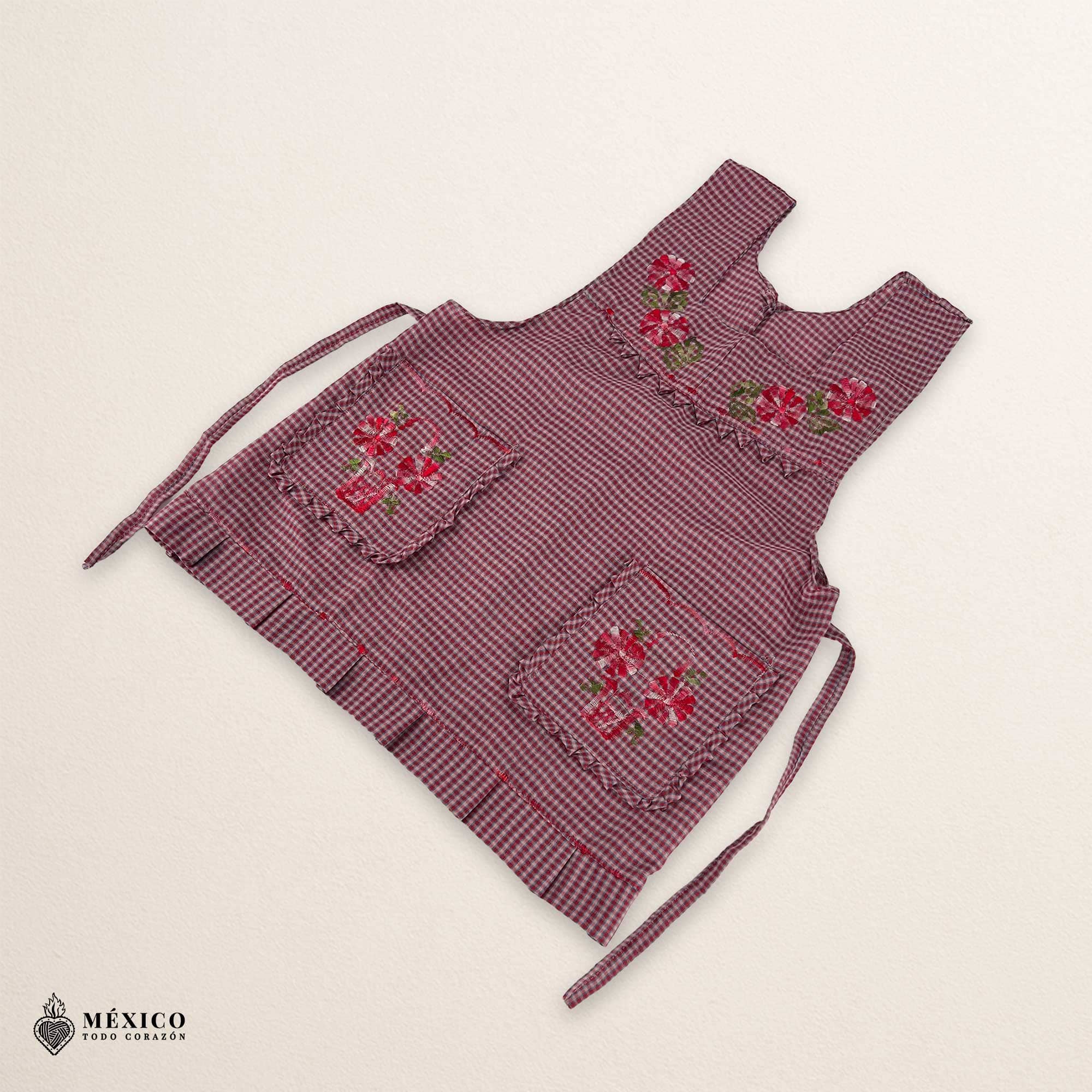 Red Mexican Embroidered Apron – Essential Cotton Kitchen Apron Floral Design