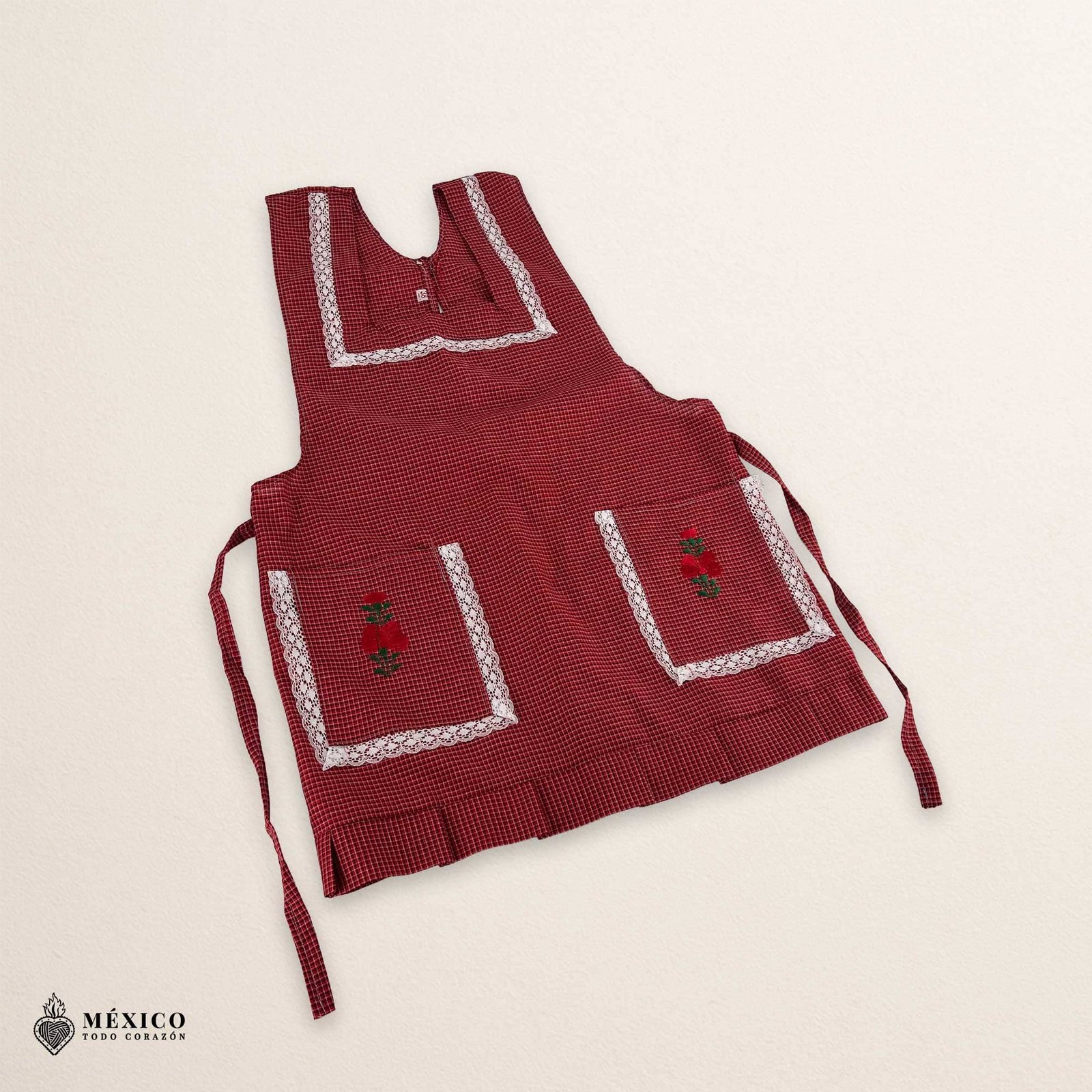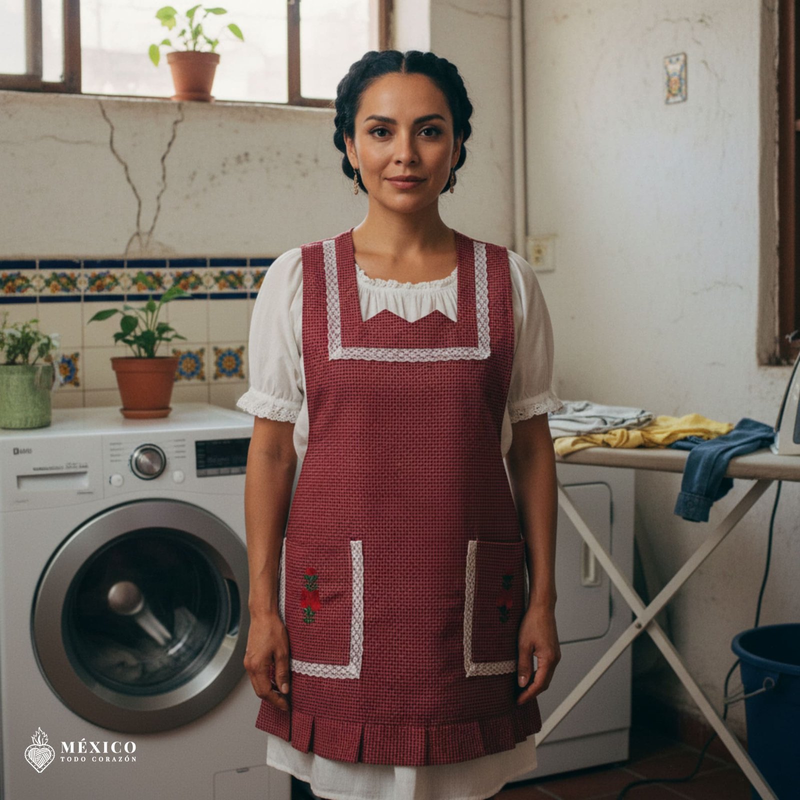 Red Mexican Embroidered Apron – Essential Cotton Kitchen Apron Floral Design