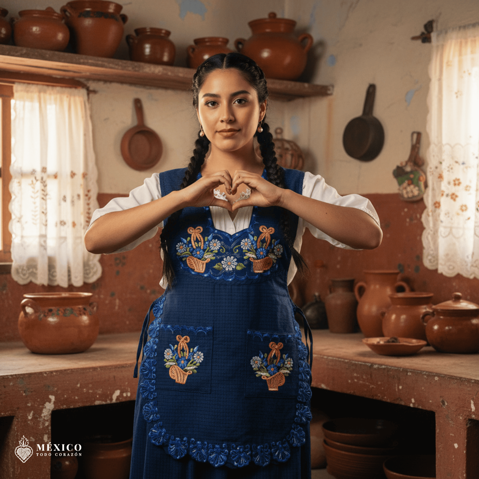 This Smock Apron collection features simpler embroidery and lighter details compared to our higher-end categories, ideal for everyday wear with a touch of Mexican charm.