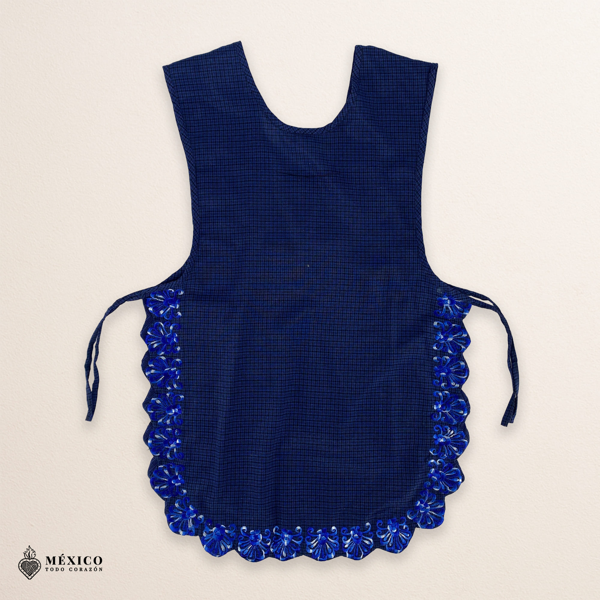 Royal Blue Mexican Embroidered Smock Apron – Floral Traditional Design for Woman