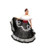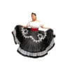 Waist 25 inch waist side by side It is made with 4 30 inch ties that adjust to your waist –This skirt is 39.5 inches long. Material Satin Material with lace and ribbon – This skirt traditionally does not hit the floor – it is worn to the ankle – We like it to the floor