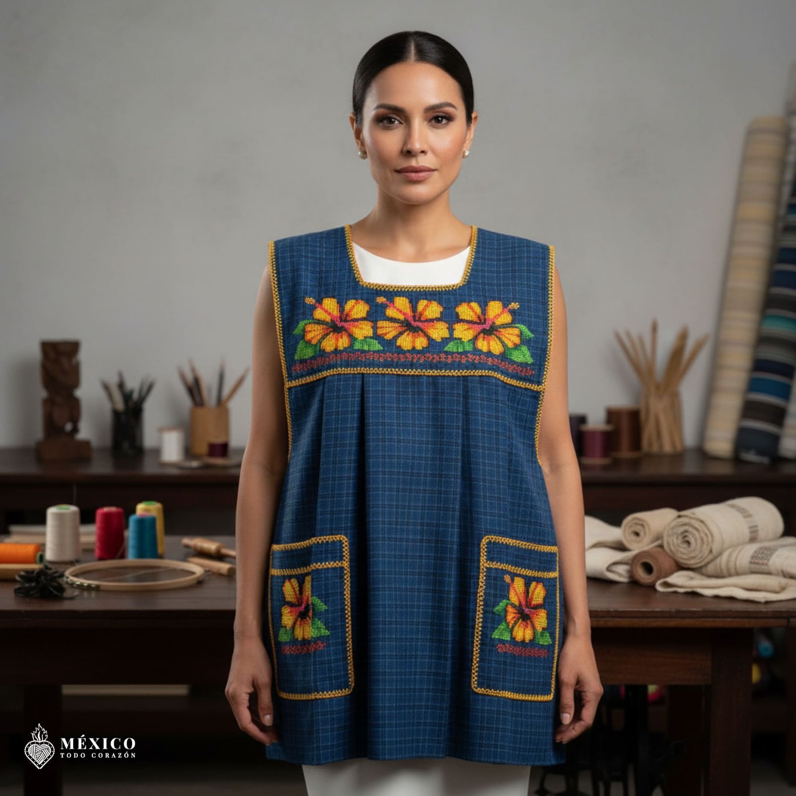 Elevate everyday rituals with the refined elegance of this Traditional Mexican Artisan Apron, a deluxe piece inspired by heritage craftsmanship and timeless design. Carefully handmade by skilled artisans, this apron features intricate cross-stitch embroidery that reflects generations of Mexican textile tradition, transformed into a functional garment with elevated presence.