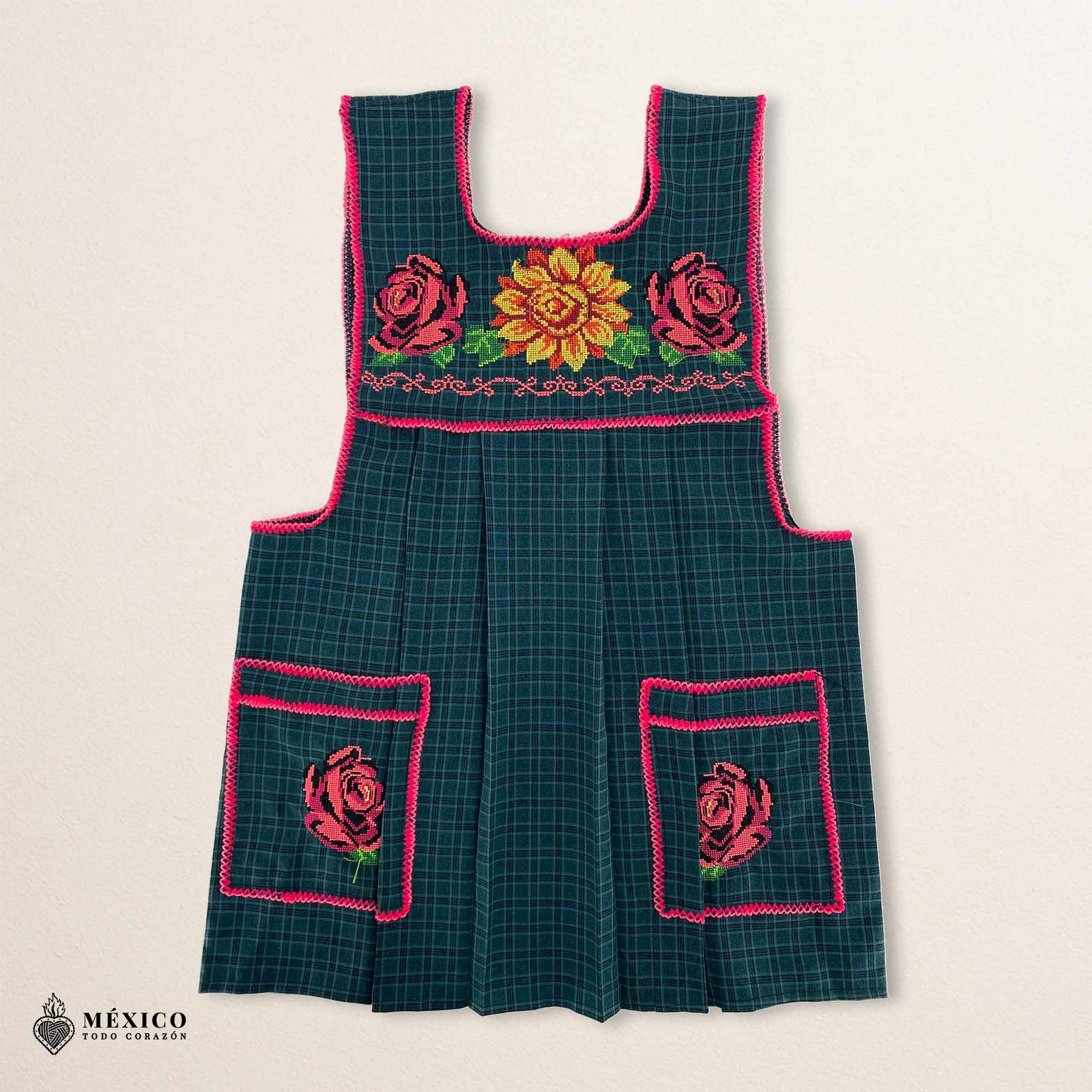 Each piece is artisan-made, which means subtle variations in embroidery and stitching are not imperfections, but signatures of authenticity—no two aprons are exactly alike.