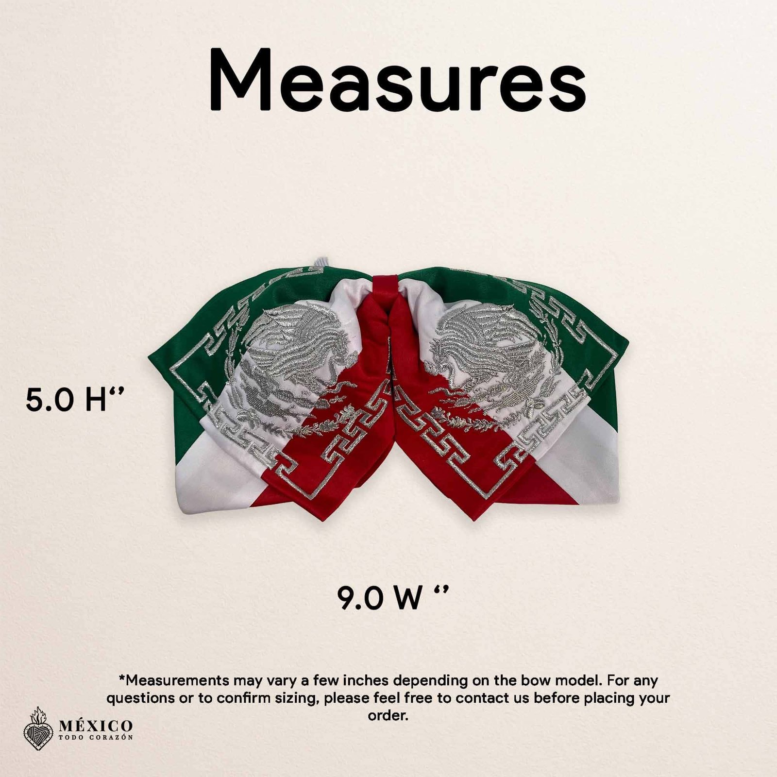 Showcase your cultural pride with this elegant Mexican moño, traditionally worn with charro or mariachi outfits. This bow tie features exquisite embroidered detail, highlighting iconic Mexican motifs perfect for fiestas, performances, or special occasions.