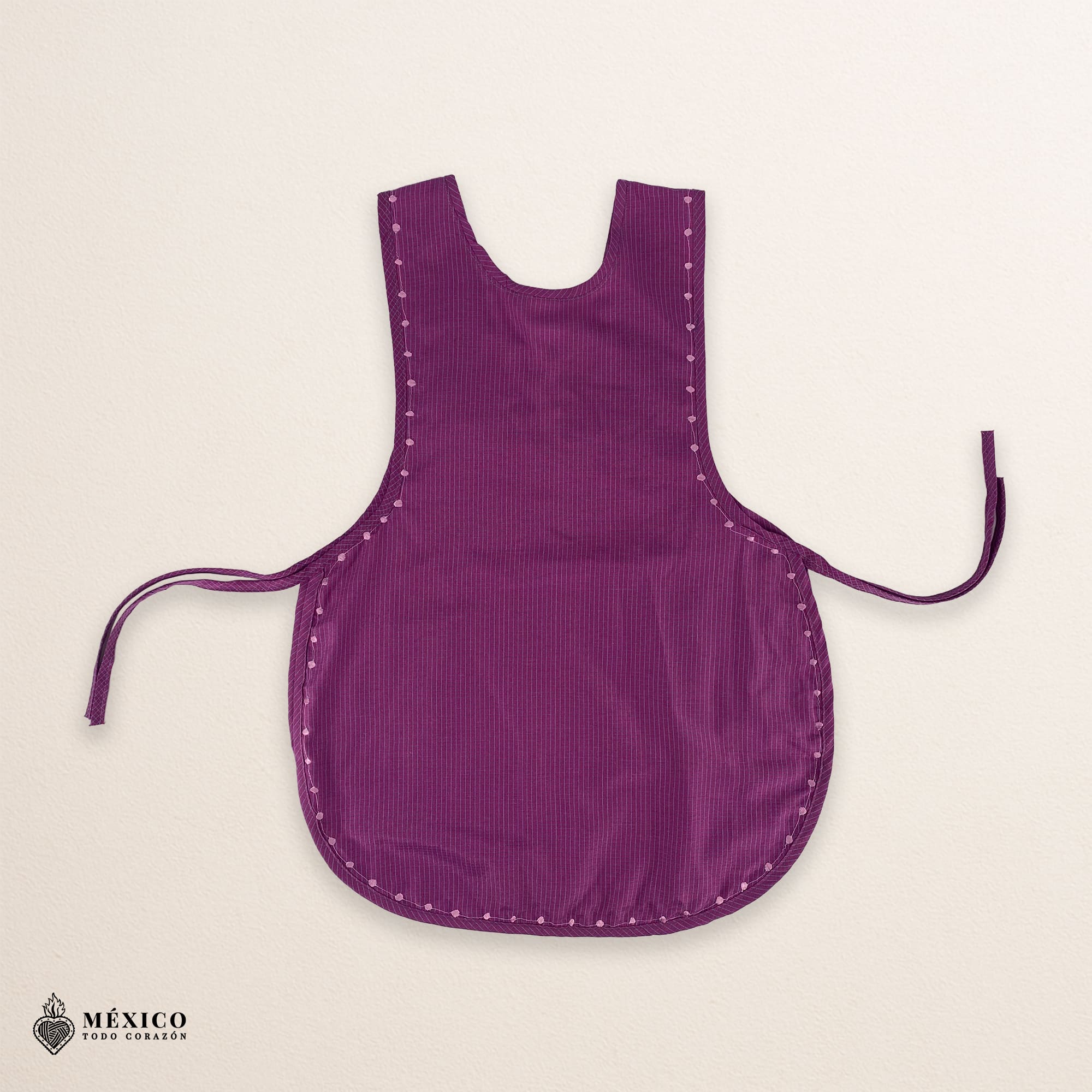 Violet Mexican embroidered smock apron with colorful floral traditional design, handcrafted artisan apron for womenViolet Mexican Embroidered Smock Apron – Floral Traditional Design for Woman