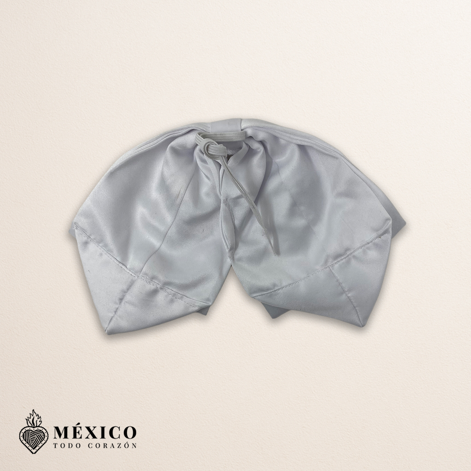 White Mexican Charro Moño with Virgen de Guadalupe Embroidery | Mariachi Bow Tie for Fiestas or Cultural Events | México Todo CorazónWhite Mexican Moño with Virgen de Guadalupe Embroidery | Traditional Mariachi Bow Tie