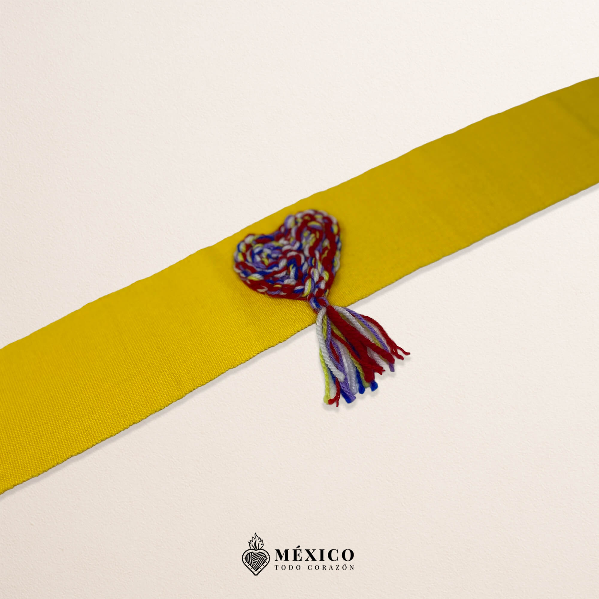 Yellow Artisan Mexican Waist Belt – Multicolor Yarn Heart Embellishmen